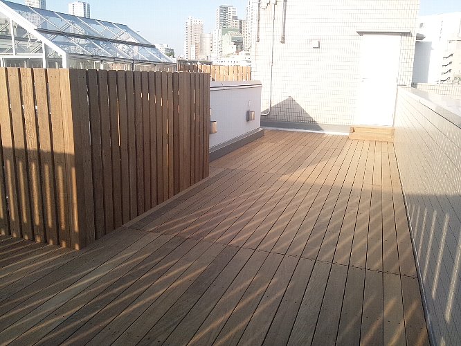 五反田の高級住宅街にあるRC3階建ての住宅屋上のウッドデッキ工事