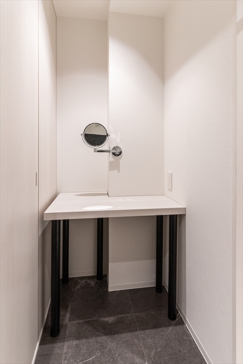 ブラックやグレーのモノトーンカラーを使用することで空間を引き締めた。
